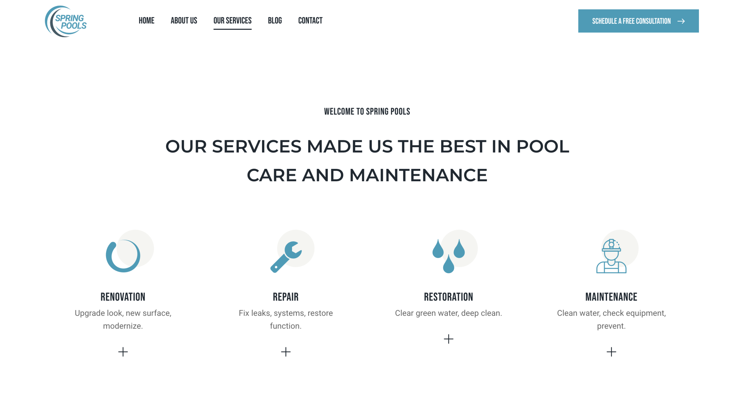 The challenge was to create a well-positioned website that could help Spring Pools attract new clients across Florida and strengthen their presence online. The project required a modern and visually appealing platform capable of clearly presenting all their services while being strategically designed to generate inquiries and conversions.